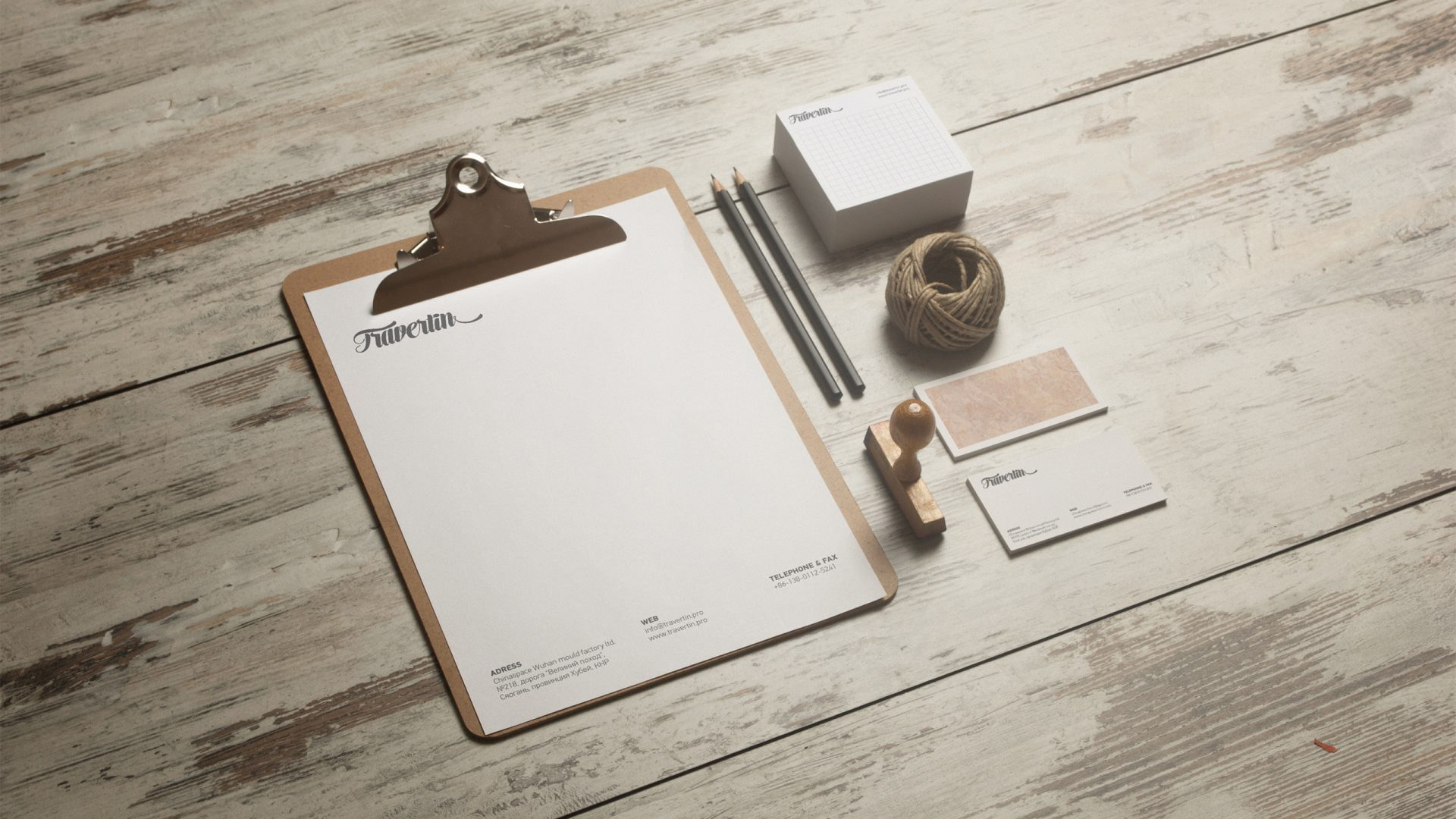 Corporate style for the Travertin company.